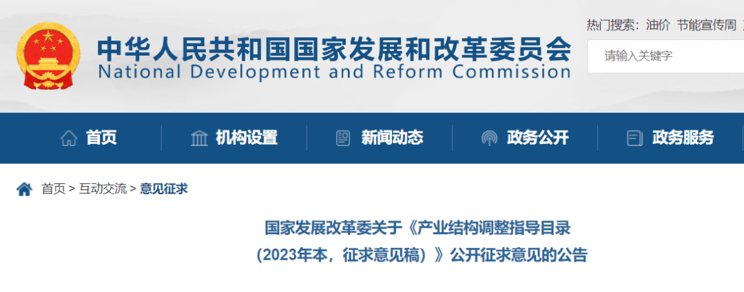 近日,國家發(fā)展改革委就《產(chǎn)業(yè)結構調(diào)整指導目錄(2023年本,征求意見稿)》公開征求意見。